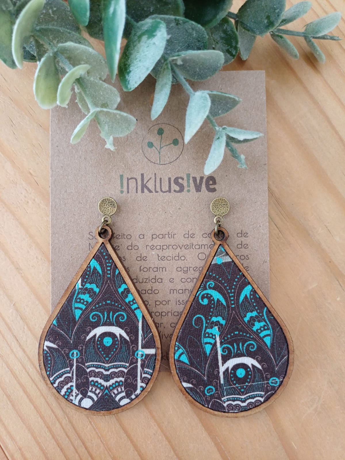 Brinco gota marrom/azul