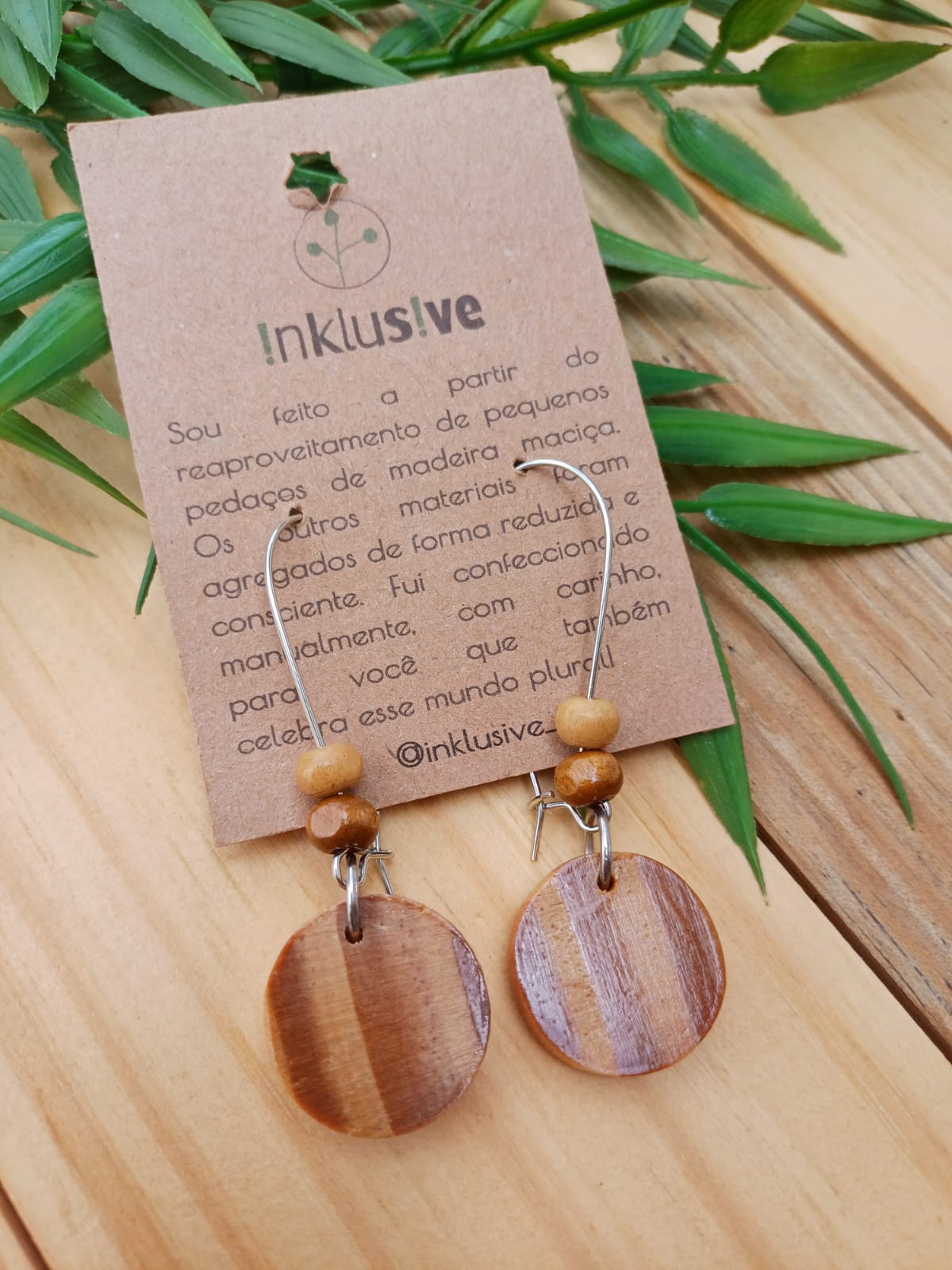 Brinco com pingente em madeira pinus e base anzol em metal. Medida total 6cm.