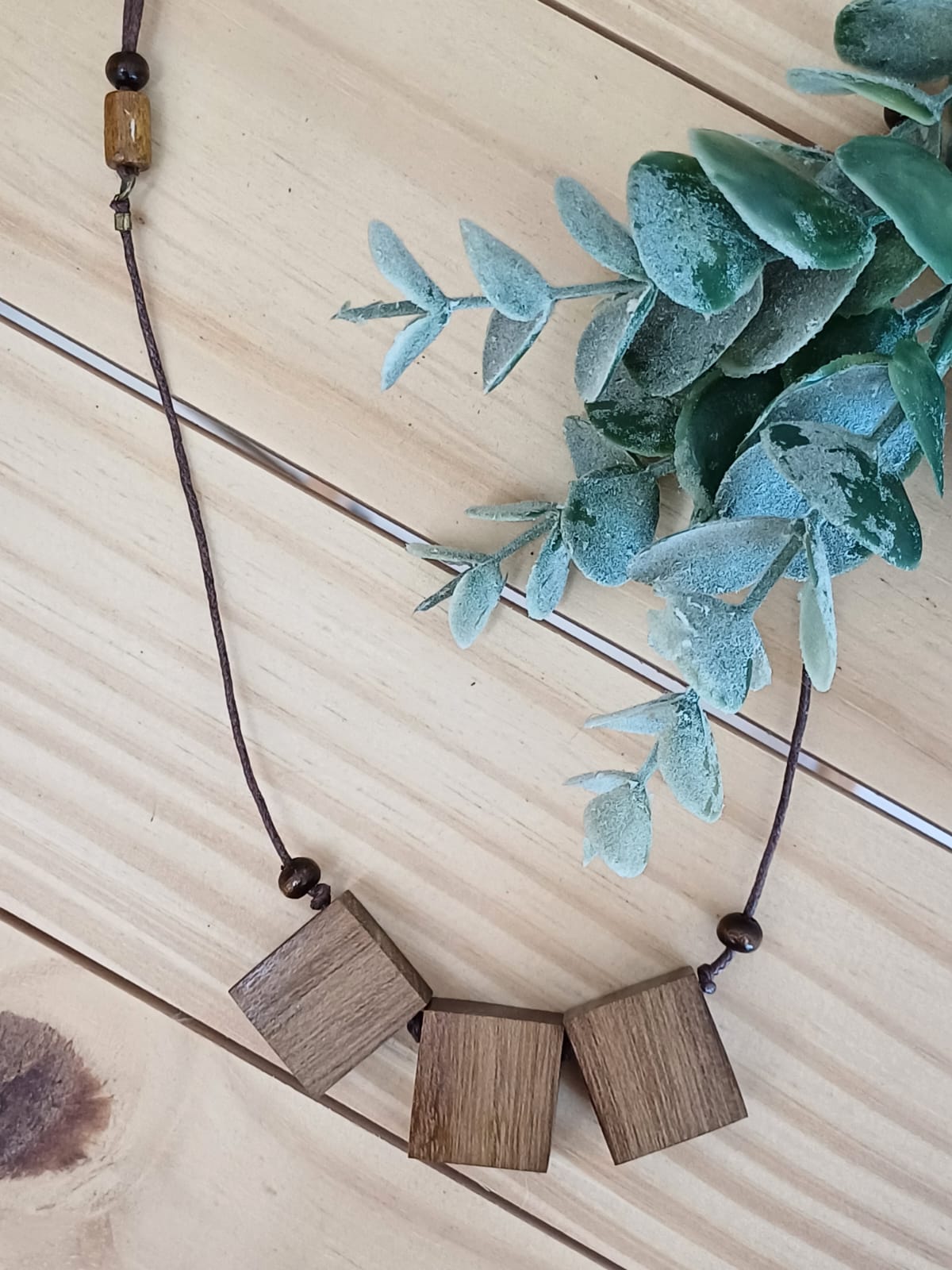 Colar feito de ipê (madeira nobre de reaproveitamento) e contas de madeira. Cordão em algodão regulá Ler mais