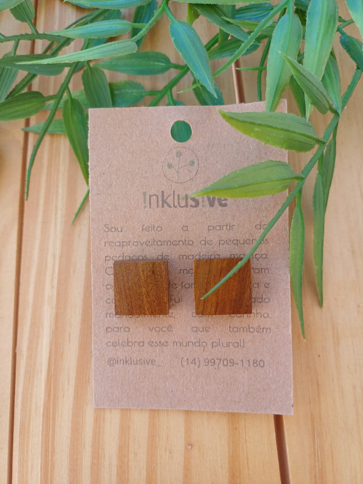 Brinco feito de madeira ipê. Tamanho aproximado 1.7 cm.